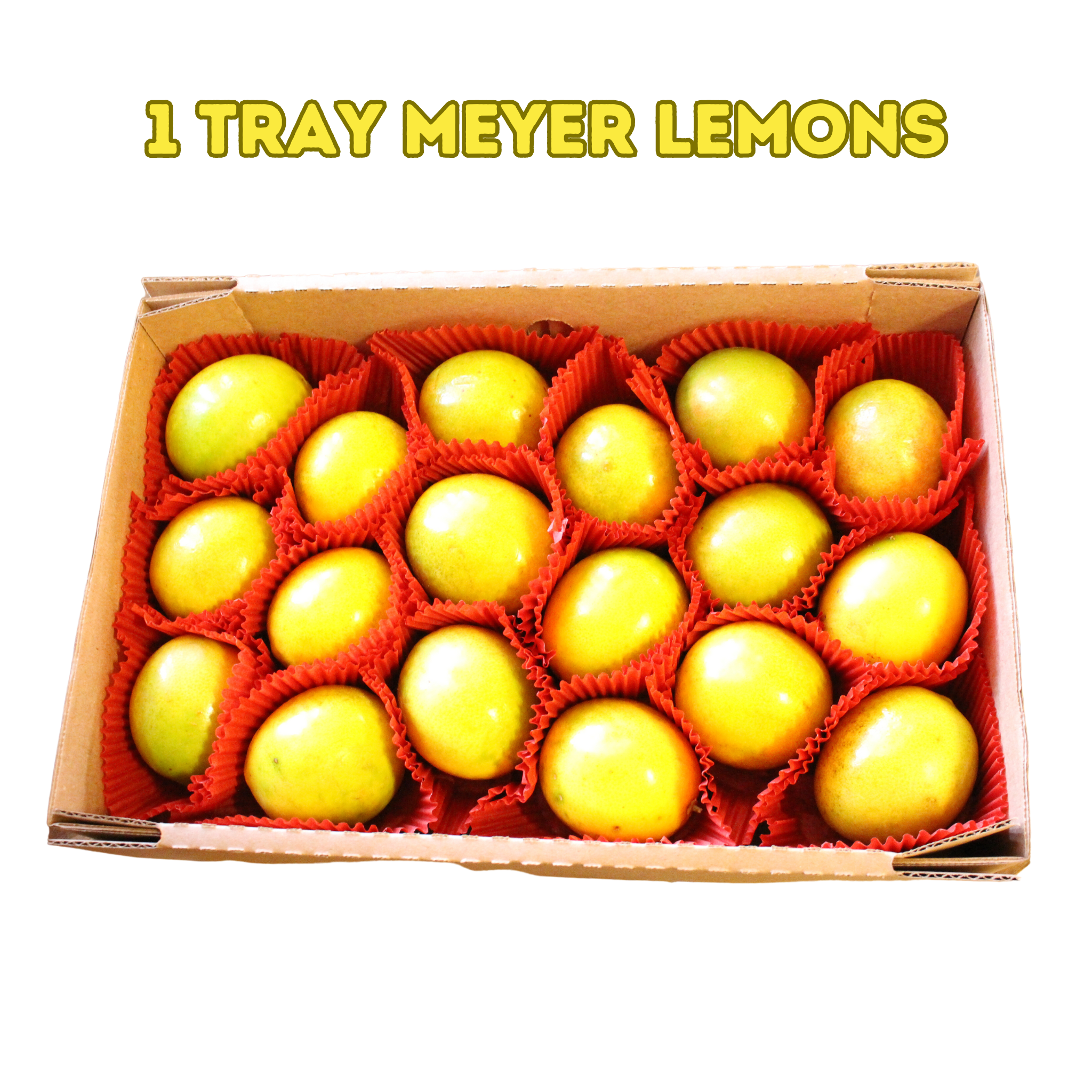 Our 1 Tray Meyer Lemon Box comes with your choice All Lemons, Mixed Lemons & Grapefruit, Mixed Lemons & Oranges, Mixed Lemons & Tangerines, Mixed Lemons, Oranges & Tangerines, Mixed Lemons, Oranges, Tangerines & Grapefruit. Please choose what fruit combination you would like.
